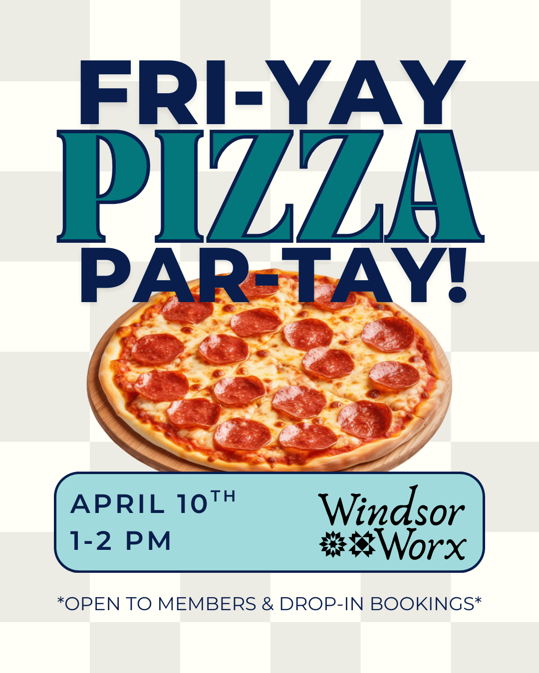 Kick off spring at Windsor Worx with Pizza Fri-Yay from 1–2 PM.
